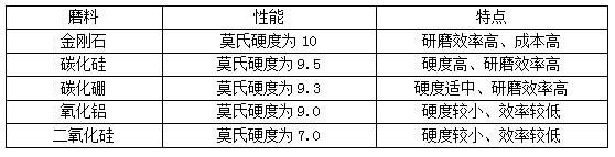 表1為各種研磨材料對藍寶石晶體的研磨性能對比