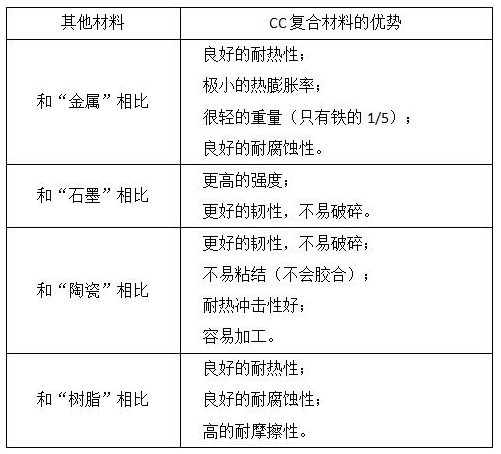 碳碳(CC)復合材料相比其他材料的優(yōu)勢: